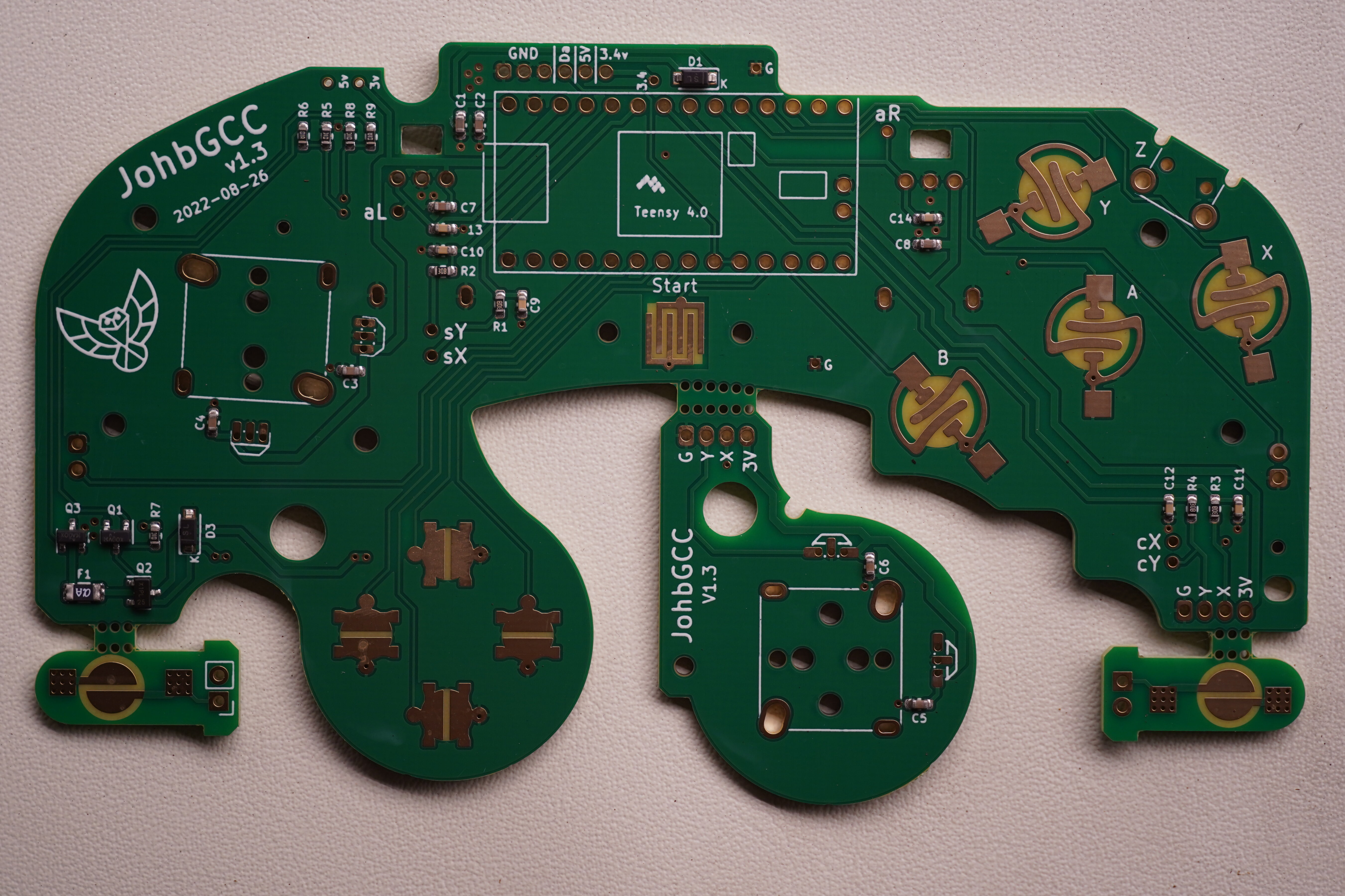 Before uploading the PhobGCC software to the Teensy you need to copy the teensy.h for this board ("Johb1_3Teensy4_0.h") into the "teensy" folder that comes with the Phob software and tell it to use it.