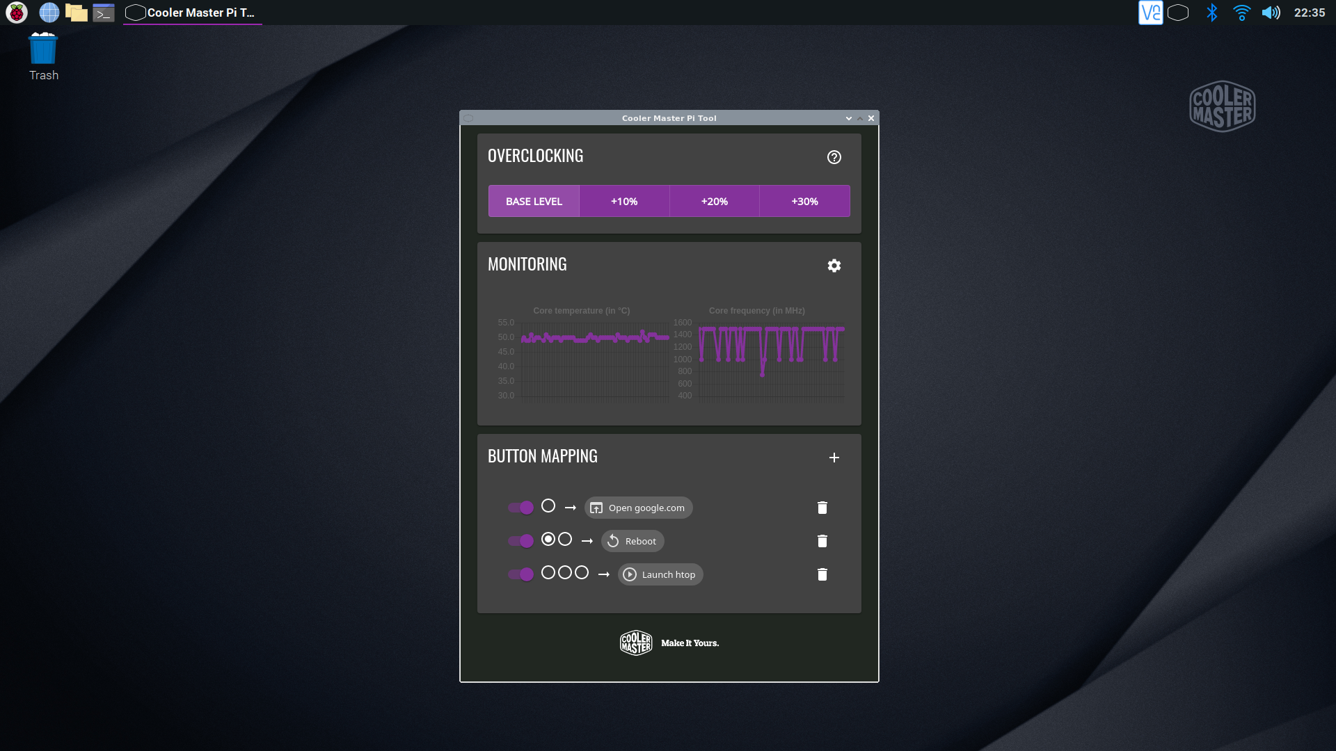 The utility allows users access to a basic set of overclocking profiles, tested and validated based on the thermal performance of Cooler Master's Pi Case 40 enclosure, monitoring of system metrics, and assignment of multiple functions to the built-in button.