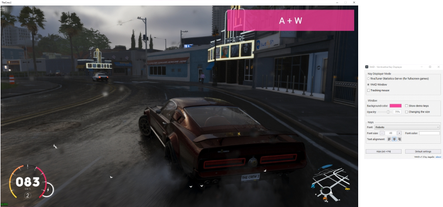 - 2 displaying modes are available: display keys in a window or send them to RTSS for display in fullscreen games;