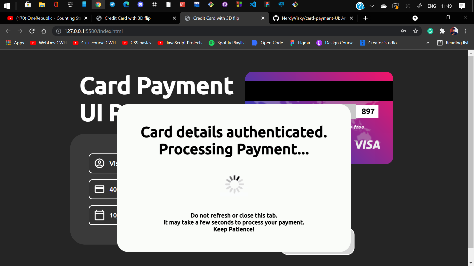 This is a front-end UI prototype for credit/debit card payment form. Click here to try out yourself.