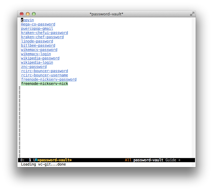 (password-vault-register-secrets-file "passwords")M-x password-vault(setq freenode-nickserv-nick "DrSexyKittah"