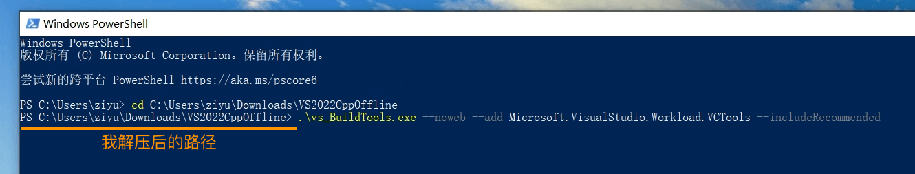 VS2022CppOffline.rar,下载后解压,然后打开Windows PowerShell,定位到解压后的目录,执行