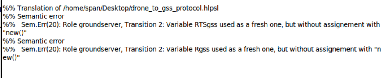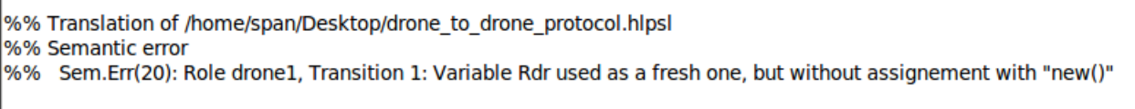 Sorry to disturb you again.When I run drone_to_drone_protocol.hlpsl, it has the following error  And drone_to_gss_protocol.hlpsl have the similar result too.