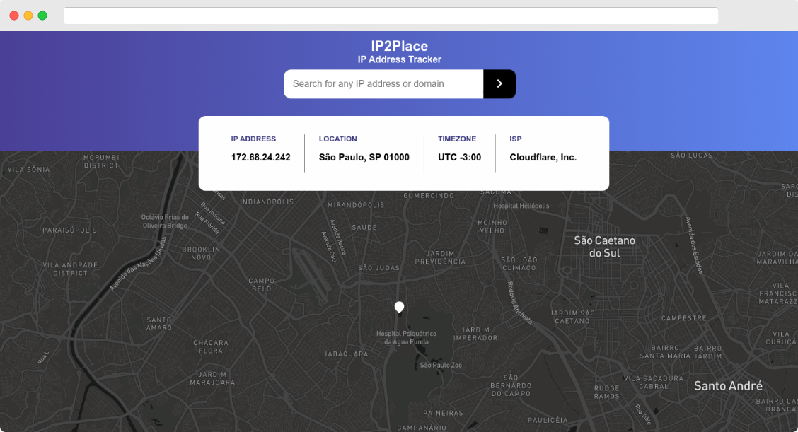Instantly find the current geolocation of the IP/URL searched. Locations are the most accurate available. Useful in the prevention of online fraud and hacking. Build with Next.JS, Typescript and styled-components, fetching the data from ip-api