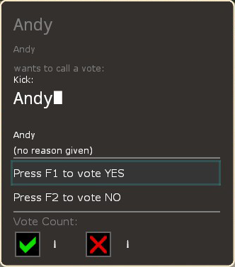 By default this mod will use a background colour as defined by your custom HUD. If you would rather override this and use the default grey you can edit the votehud.res file in this mods resource\ui folder. Look for the two lines that start with // "bgcolor_override" and remove the 2 slashes to uncomment them. One of them will make the active vote panel have a grey background and the other will do the same for the vote creation panel.
