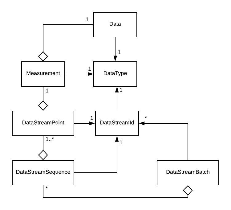 Measurement's of the same DataType coming from the same device in a study deployment are aggregated in data streams, identified by DataStreamId.