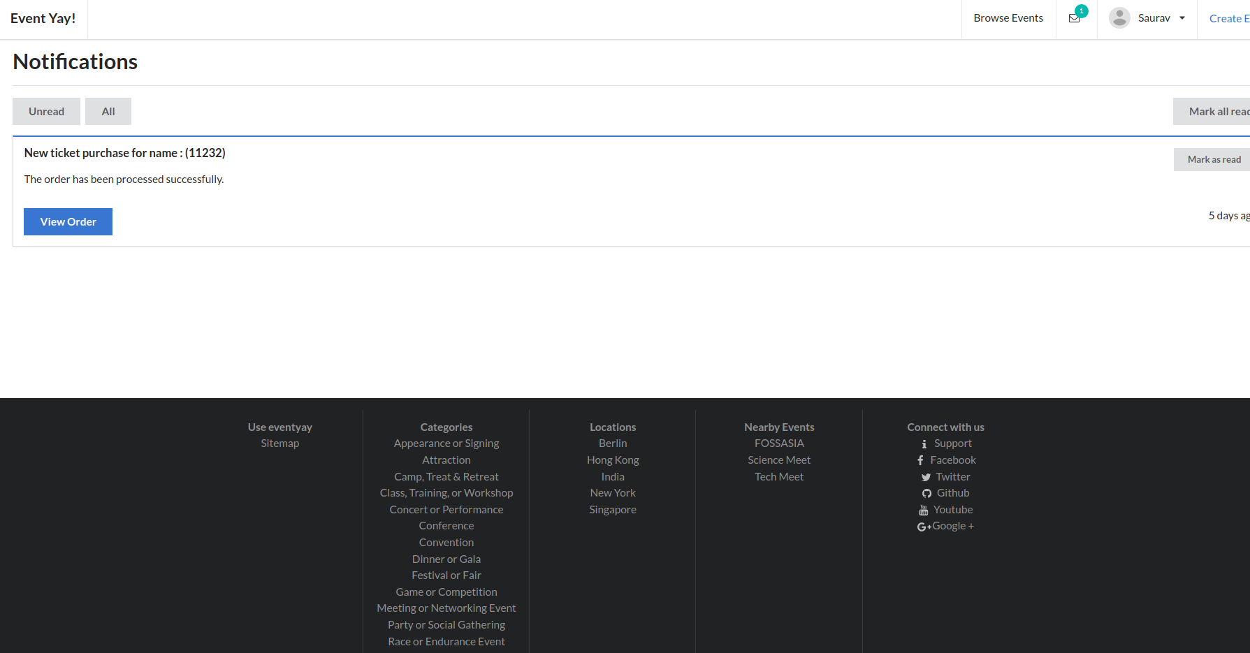 By this time, we were able to successfully achieve all the targets of the program. Since we had a good part of 2 weeks left in the coding phase we decided to go ahead with our stretch goals. The first stretch goal accomplished was the implementation of the Attendee form builder both on the server and frontend side. Now the event organizer could specify what information to collect from the ticket buyers which was a highly demanded feature. With a week still left in the coding period, we decided to integrate action buttons in the Notification panel. We started off with the server side support and quickly moved on to it's frontend integration.