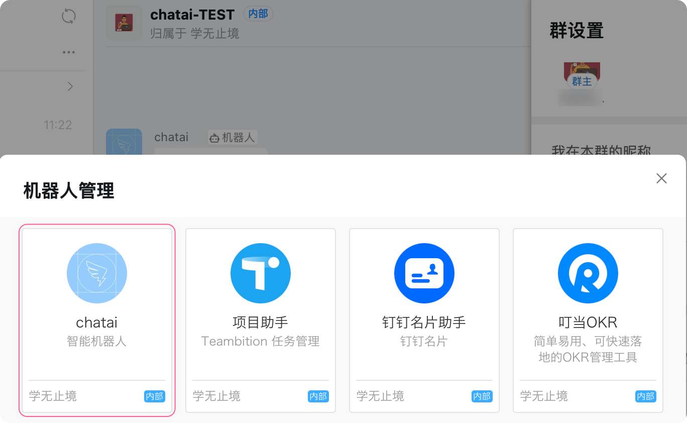 2023-03-08补充,我发现也可以不在群里艾特机器人聊天,还可点击机器人,然后点击发消息,通过与机器人直接对话进行聊天: