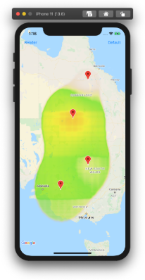 Heatmap interpolation allows developers to create robust heatmaps based on average intensities of given data points. The heatmap interpolation class also allows developers with sparse data sets to produce meaningful heatmaps. Developers can input lists of GMUWeightedLatLng objects (or singular) and the class's point generating function will return an array of GMUWeightedLatLng that can be added to the existing heatmap.