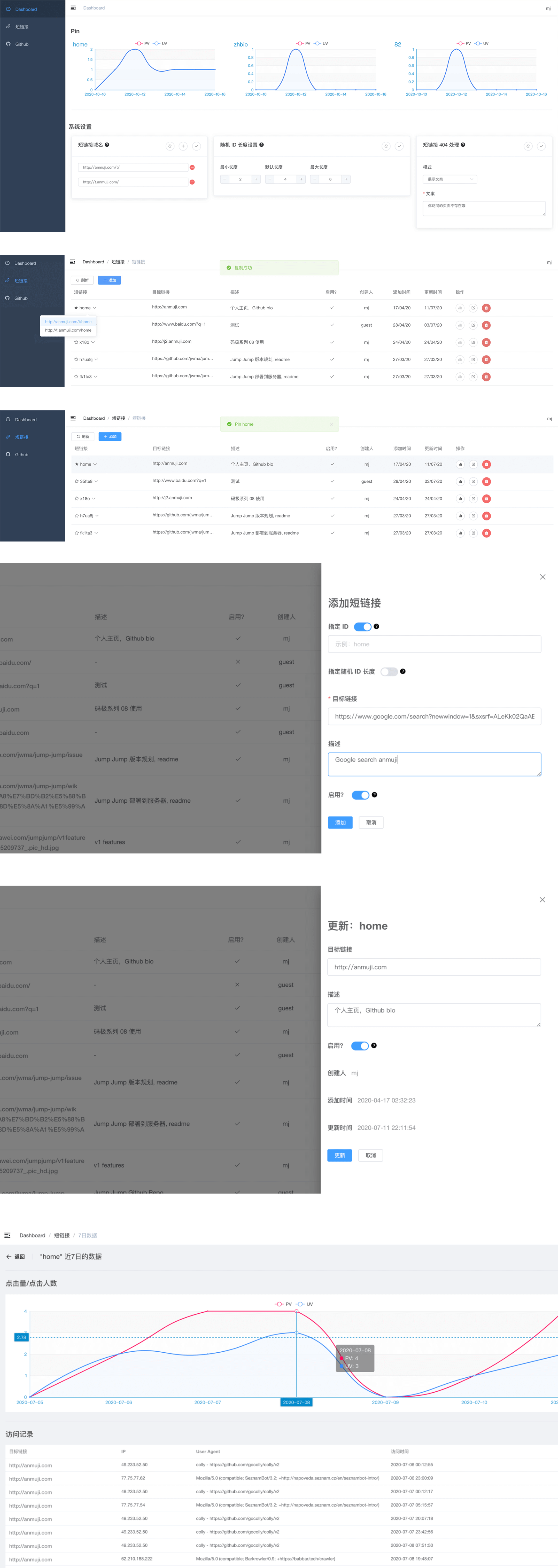 -password=12345 -role=2在服务启动完毕且已经创建好用户之后,可以打开浏览器,访问 http://localhost:8080 进入管理后台进行短链接的管理工作。