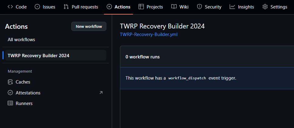 4. Click 'Run workflow', choose the branch for the recovery that you want to build, and fill in according to the above 'Parameter Description'
