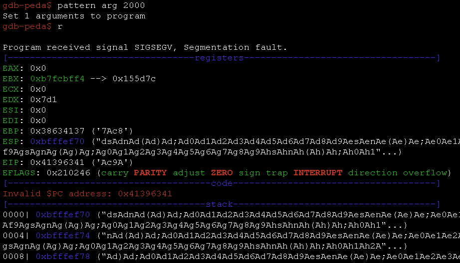 peda help):aslr-- Show/set ASLR setting of GDBchecksec-- Check for various security options of binarydumpargs-- Display arguments passed to a function when stopped at a call instructiondumprop-- Dump all ROP gadgets in specific memory rangeelfheader-- Get headers information from debugged ELF fileelfsymbol-- Get non-debugging symbol information from an ELF filelookup-- Search for all addresses/references to addresses which belong to a memory rangepatch-- Patch memory start at an address with string/hexstring/intpattern-- Generate, search, or write a cyclic pattern to memoryprocinfo-- Display various info from /proc/pid/pshow-- Show various PEDA options and other settingspset-- Set various PEDA options and other settingsreadelf-- Get headers information from an ELF fileropgadget-- Get common ROP gadgets of binary or libraryropsearch-- Search for ROP gadgets in memorysearchmem|find-- Search for a pattern in memory; support regex searchshellcode-- Generate or download common shellcodes.skeleton-- Generate python exploit code templatevmmap-- Get virtual mapping address ranges of section(s) in debugged processxormem-- XOR a memory region with a key