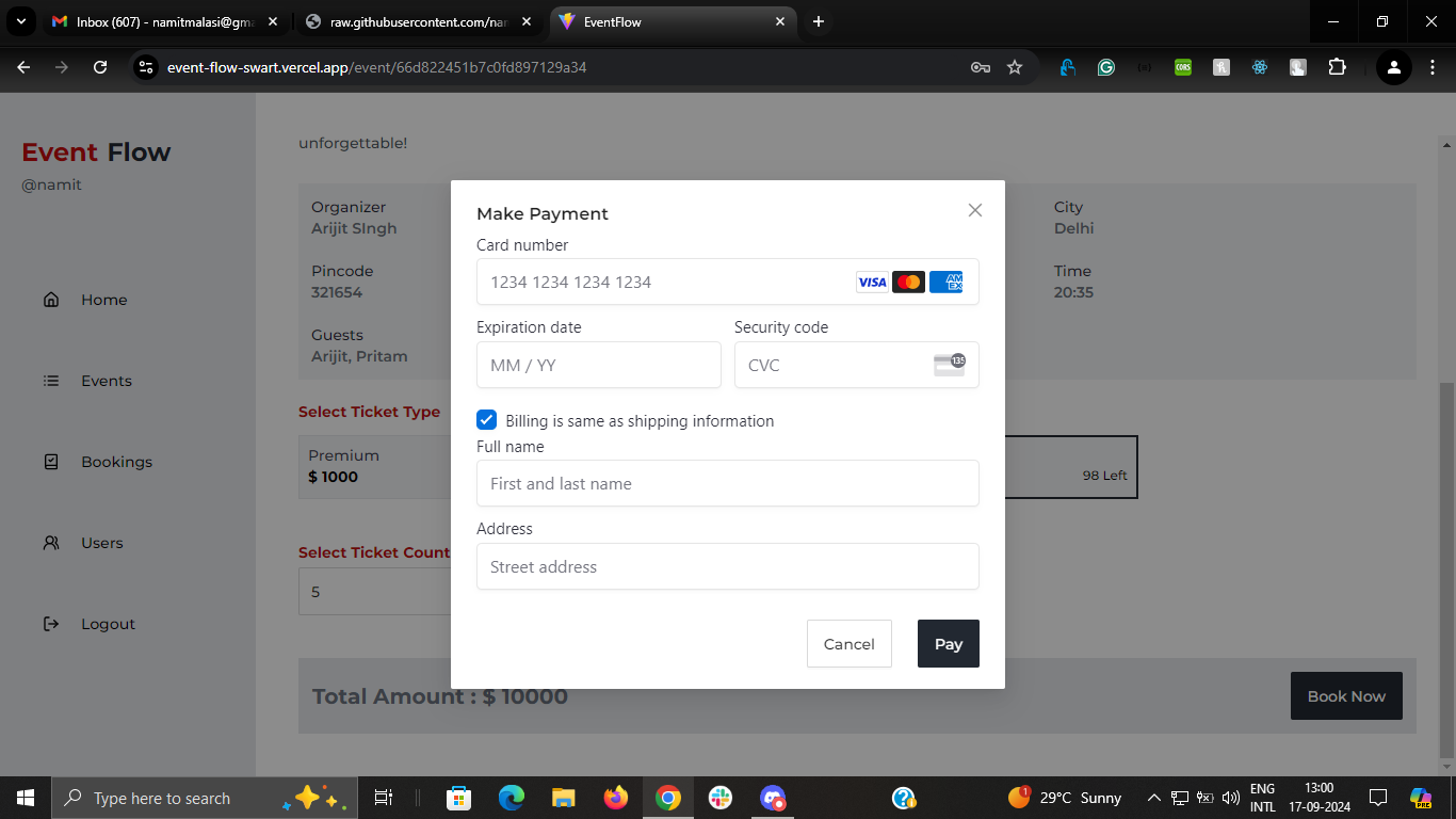 - Integrated a secure payment processing system to facilitate seamless transactions for event registrations, enhancing user experience and trust.
