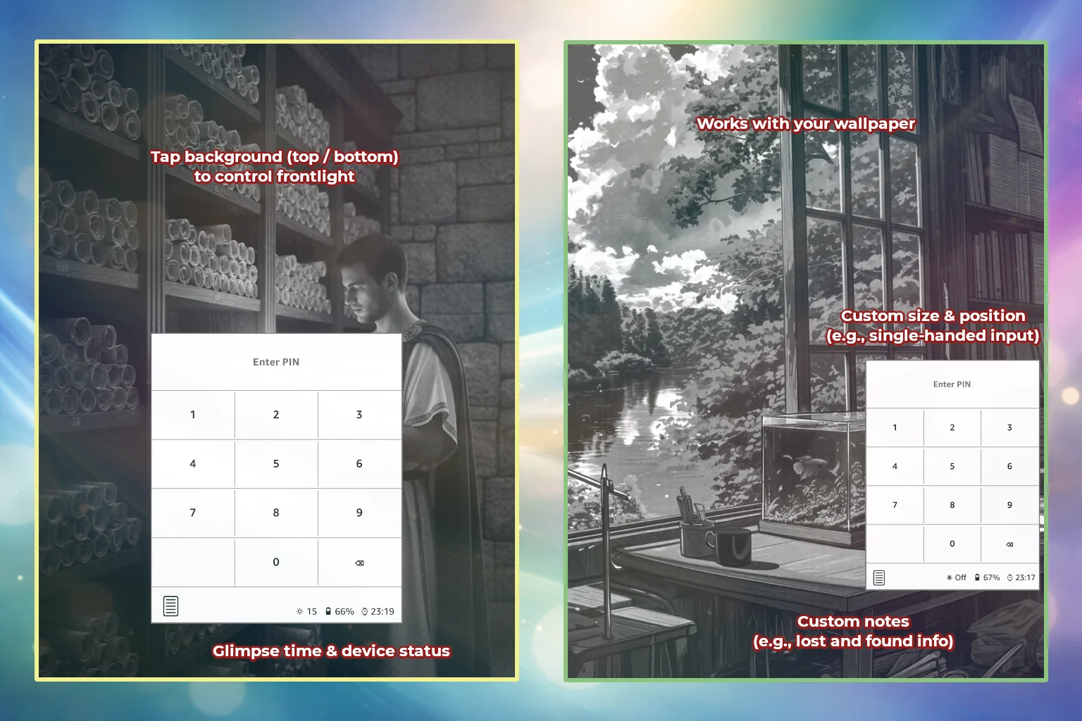 ScreenLockPin: A fast, sophisticated PIN Lock Screen that protects your KOReader content from unauthorized access.