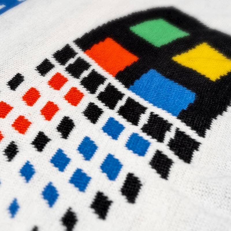 - 微软在 XBOX 官方商店出售 Windows 95 毛衣,售价69.99美元。蓝白底色大概是象征 Windows 95 默认桌面的蓝天白云。