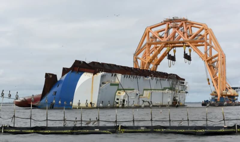 2019年9月,一艘200米长的汽车滚装船在美国佐治亚州外海沉没,上面装有4000辆汽车。最近,这艘船被打捞起来,场面非常壮观。