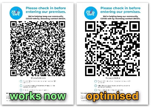 本文介绍二维码的原理,并举了一个例子,如何将一个高密集的二维码(上图左)重新编码成低密集的二维码(上图右),提高了可用性。