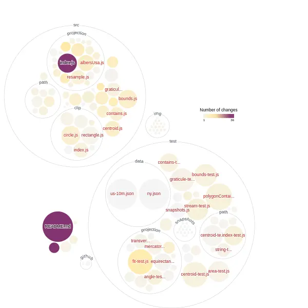GitHub 官方推出的一个代码库可视化工具,通过 GitHub Actions 生成 SVG 文件,代表整个代码库,空心圆表示目录,实心圆表示文件,圆的大小代表了文件的大小,还能根据提交历史,生成动态变化图。