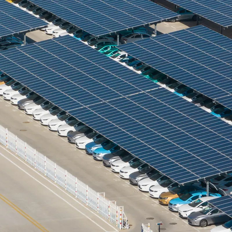 山西省晋中的光伏停车棚。这种停车场非常适合电动车,只要可以停车,就可以充电。(via)