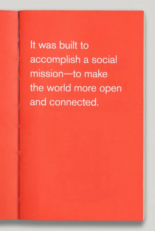 翻到第二页,“(成立公司是)为了完成一项使命:让世界更加开放和连接。”