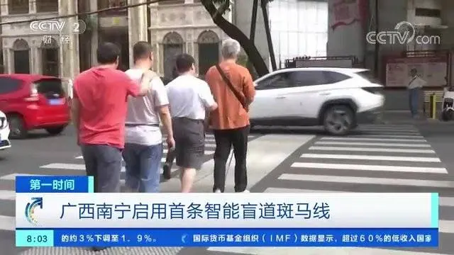 广西南宁在10月15日国际盲人节,启用了首条智能盲道斑马线。交警部门事先向盲人提供手环,盲人来到路口,可以按下手环的按钮。