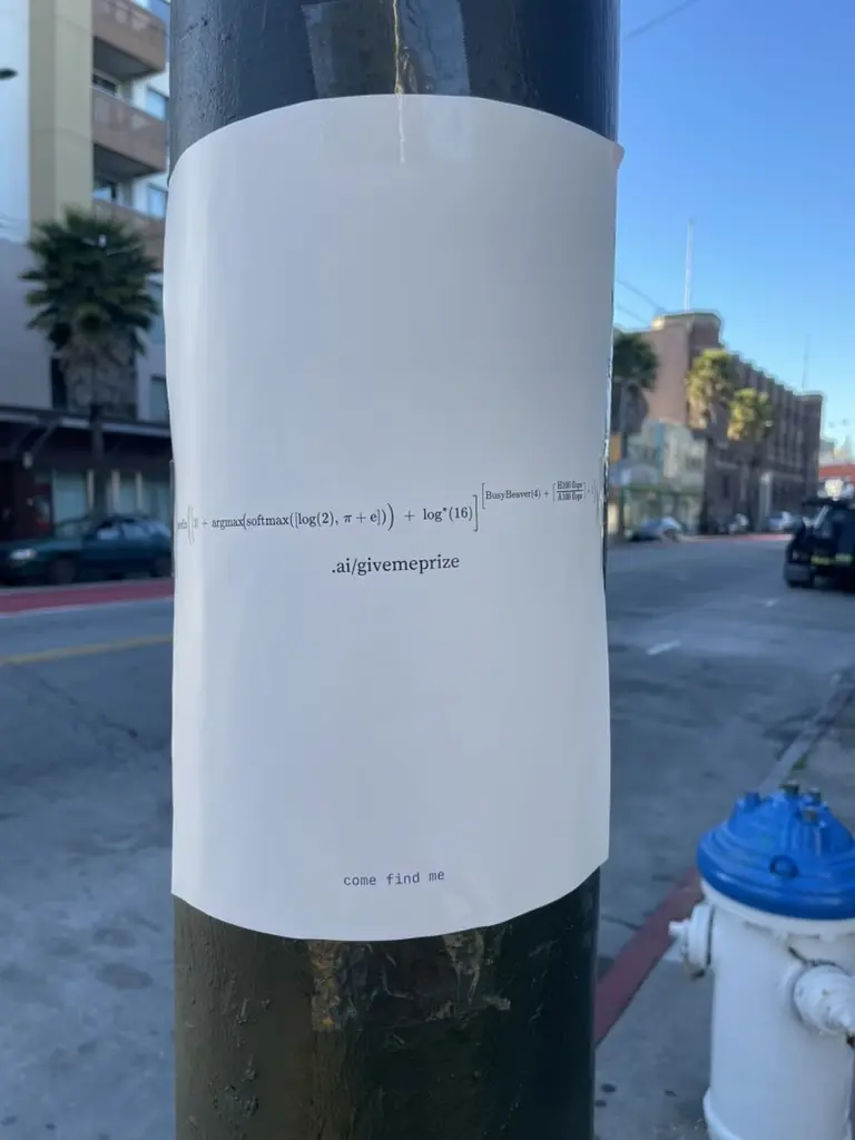 旧金山街头的电线杆上,最近出现了奇怪的海报,上面是一个很长的数学公式。