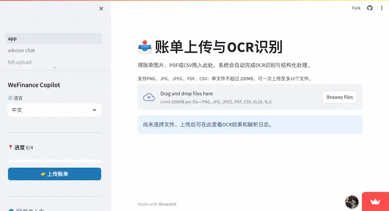 一个开源的 Web 应用,用户上传账单,它会用 AI 进行识别和财务分析。(@JasonRobertDestiny 投稿)