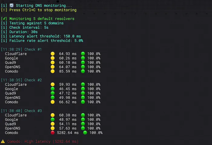 测试 DNS 服务器的命令行工具,可以测试本地到 DNS 服务器的延迟,以及 DNS 解析获取域名的 IP 地址的耗时。