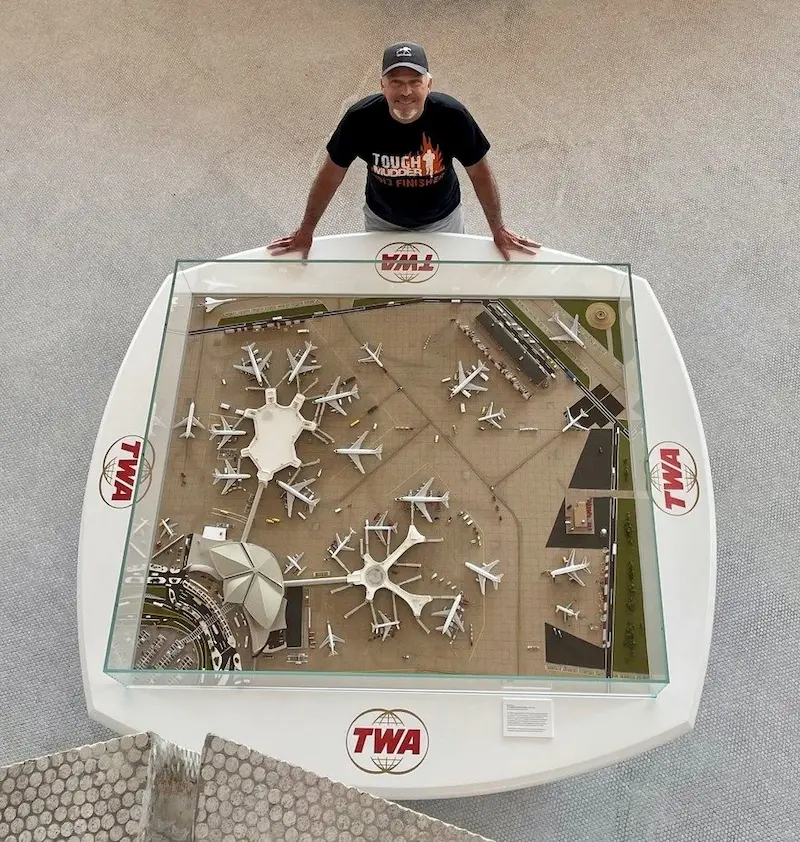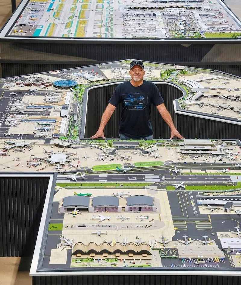 一位退休的美国飞行员,喜欢制作飞机场模型。