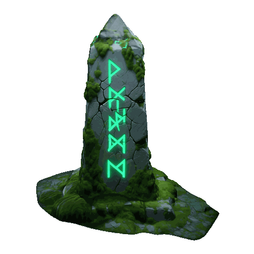 - Obelisk: "An ancient, monolithic stone obelisk covered in glowing green runic carvings. The grey stone is deeply cracked from age and covered in patches of thick, fuzzy green moss."