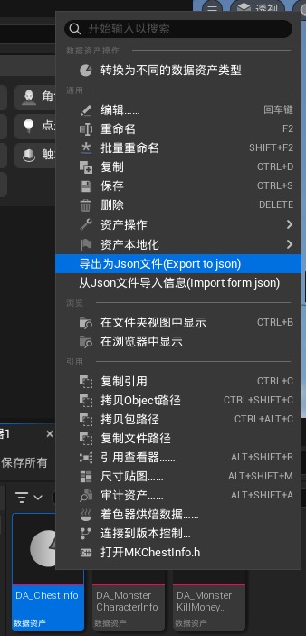 Enable the plugin viaEdit → Plugins → Project → DataAssetJsonTool