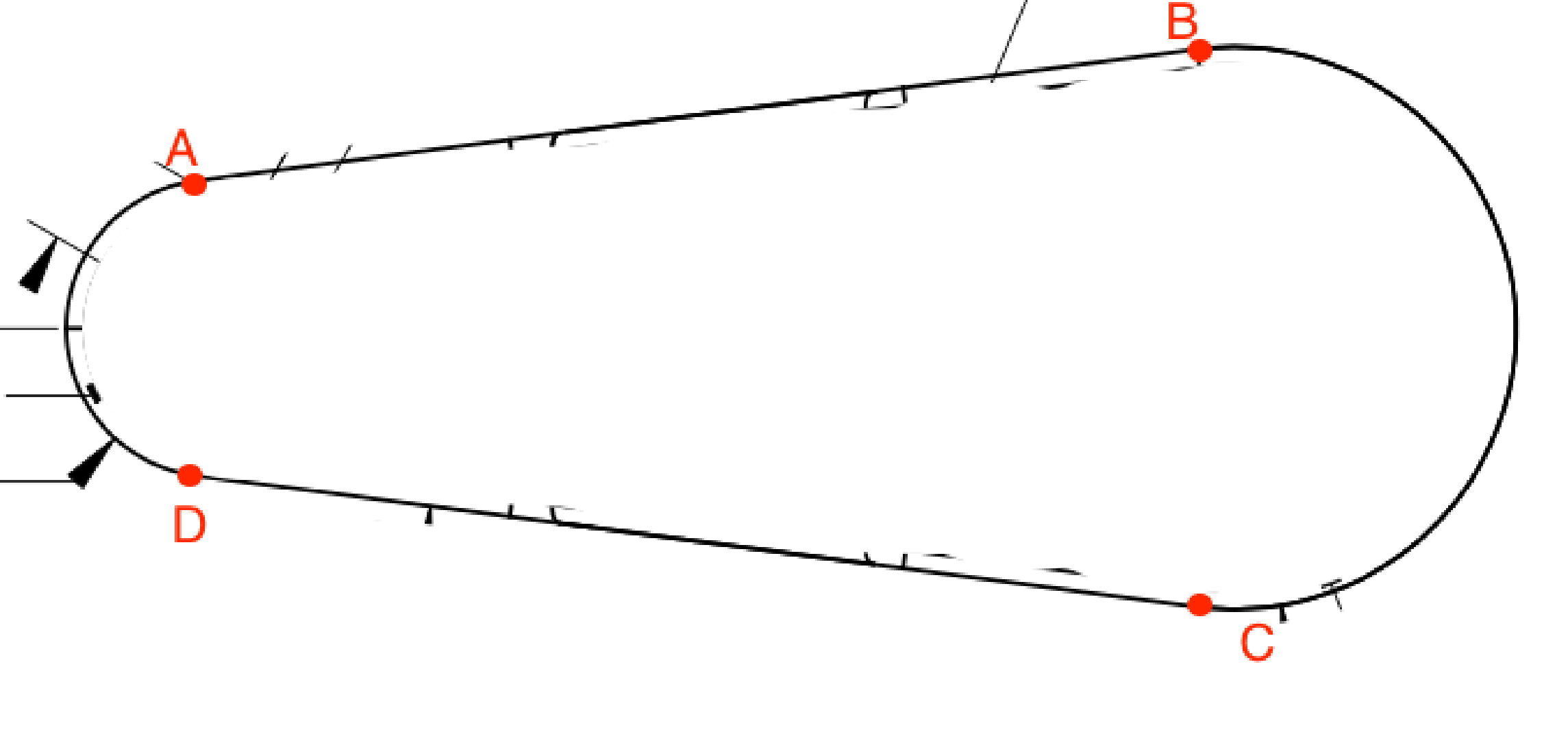 The outer bounds are defined by two arcs of different sizes with tangential lines between them.